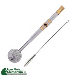 A bomba de Tereré estampada possui 18,5 cm de altura e base com largura de 3 cm.